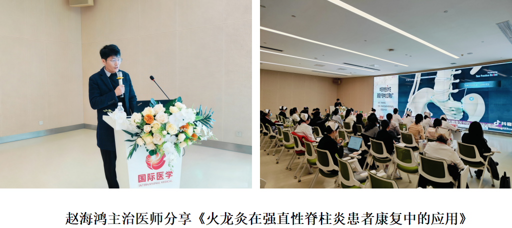西安国际医学中心医院一站式中西医多学科疼痛门诊主治医师赵海鸿分享了《火龙灸在强直性脊柱炎患者康复中的应用》,从疾病机制入手,深入解析火龙灸温阳通络、散寒除湿的作用机理,并结合临床案例,生动展示了该技术在缓解疼痛、改善关节功能方面的显著成效。