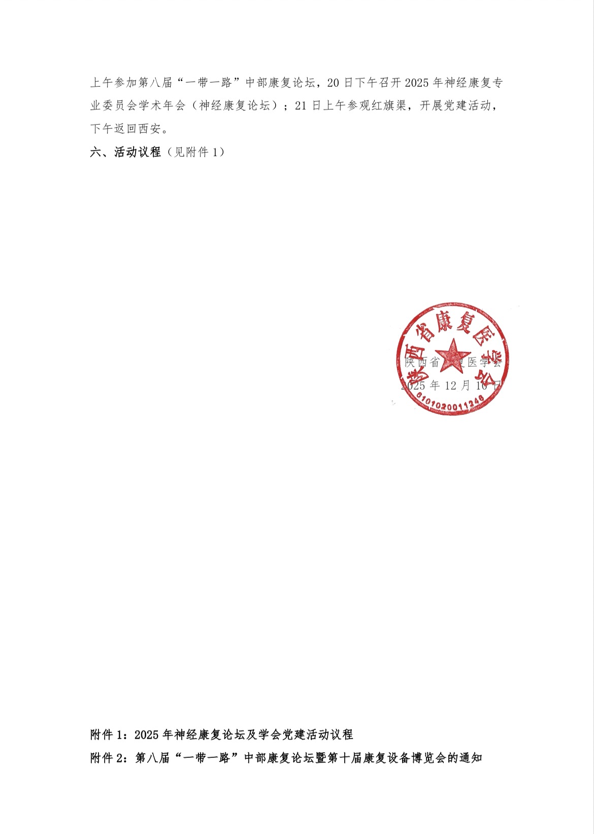 陕西省康复医学会关于举办 2025 年神经康复专业委员会学术年会及学会党建活动的通知