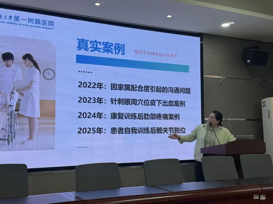 本次研讨会聚焦康复治疗师岗位胜任力培养,邀请物理治疗专委会两位临床一线专家带来专题分享。专委会主任委员、西安交大二附院康复医学科治疗师长雷晓辉,以《从院校到临床—物理治疗师的岗位胜任力》为题,结合其神经及骨关节疾病临床康复运动治疗技术的研究方向,深入剖析了物理治疗师从校园学习到临床实践的能力转化关键点,明确了岗位胜任力的核心要求与提升路径。专委会副主任委员、西安交大一附院康复医学科康复治疗师长毛菲,则围绕《临床康复风险防控和医患沟通技巧》展开讲解,结合神经、骨关节损伤、肿瘤康复等多领域的临床经验,系统梳理了康复工作中的风险防控要点,并分享了实用的医患沟通方法与技巧。