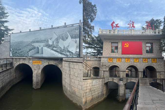 太行山下,红旗渠畔,历史的回响愈发清晰。大家驻足于红旗渠分水闸前,斑驳的石砌墙体上,“红旗渠分水闸”鎏金大字熠熠生辉,仿佛在静静诉说着林县人民“重新安排河山”的壮阔历程。抬望崖壁凿痕,耳畔似闻当年夯筑号子,先辈们战天斗地的场景已然浮现。