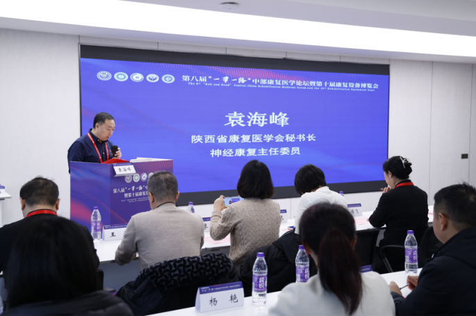 首先由陕西省康复医学会秘书长、神经康复专委会主任委员袁海峰致辞。袁海峰主委表示,本次学术会议聚焦脑卒中康复进展,从循证技术到临床应用、从功能评估到多学科模式,旨在推动省内脑卒中康复的规范化与精准化发展,为患者提供更优质的康复服务。