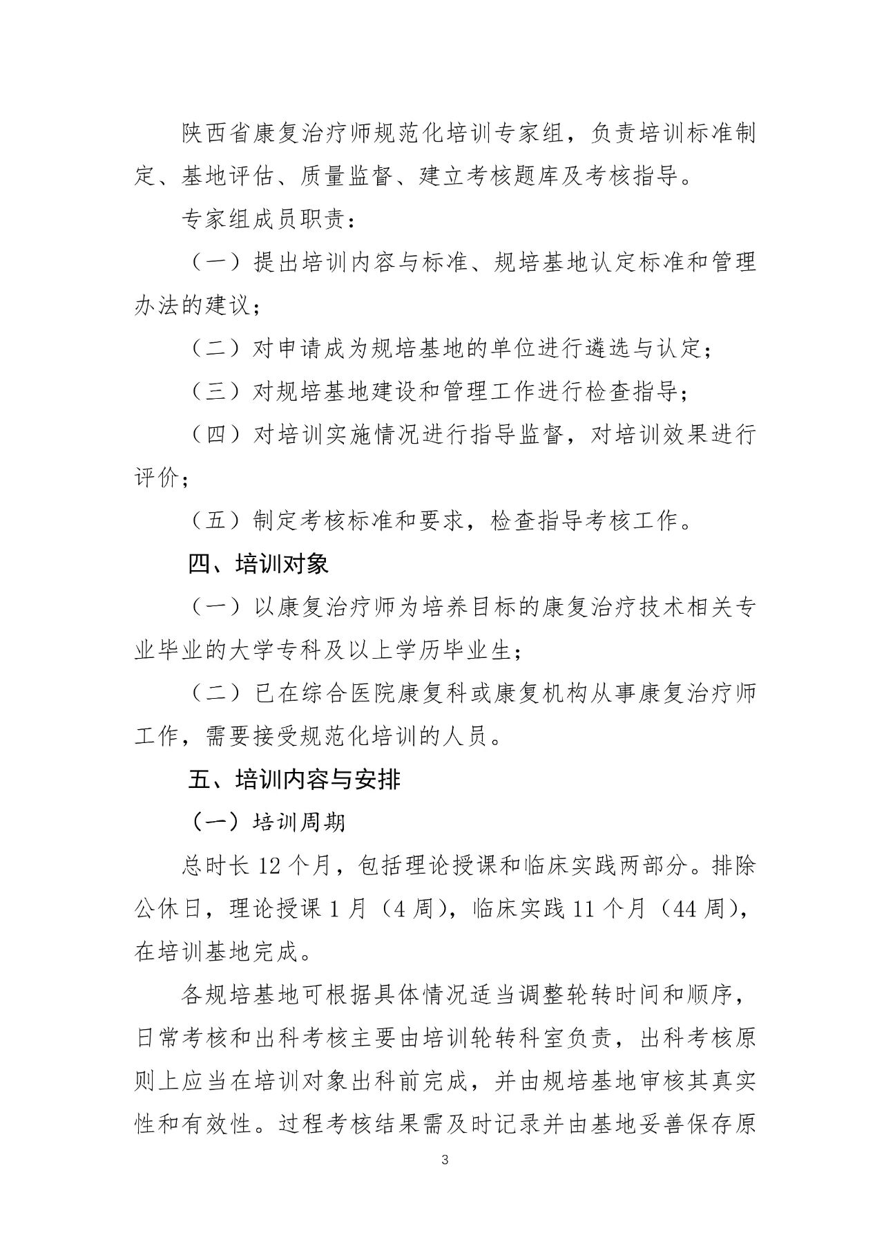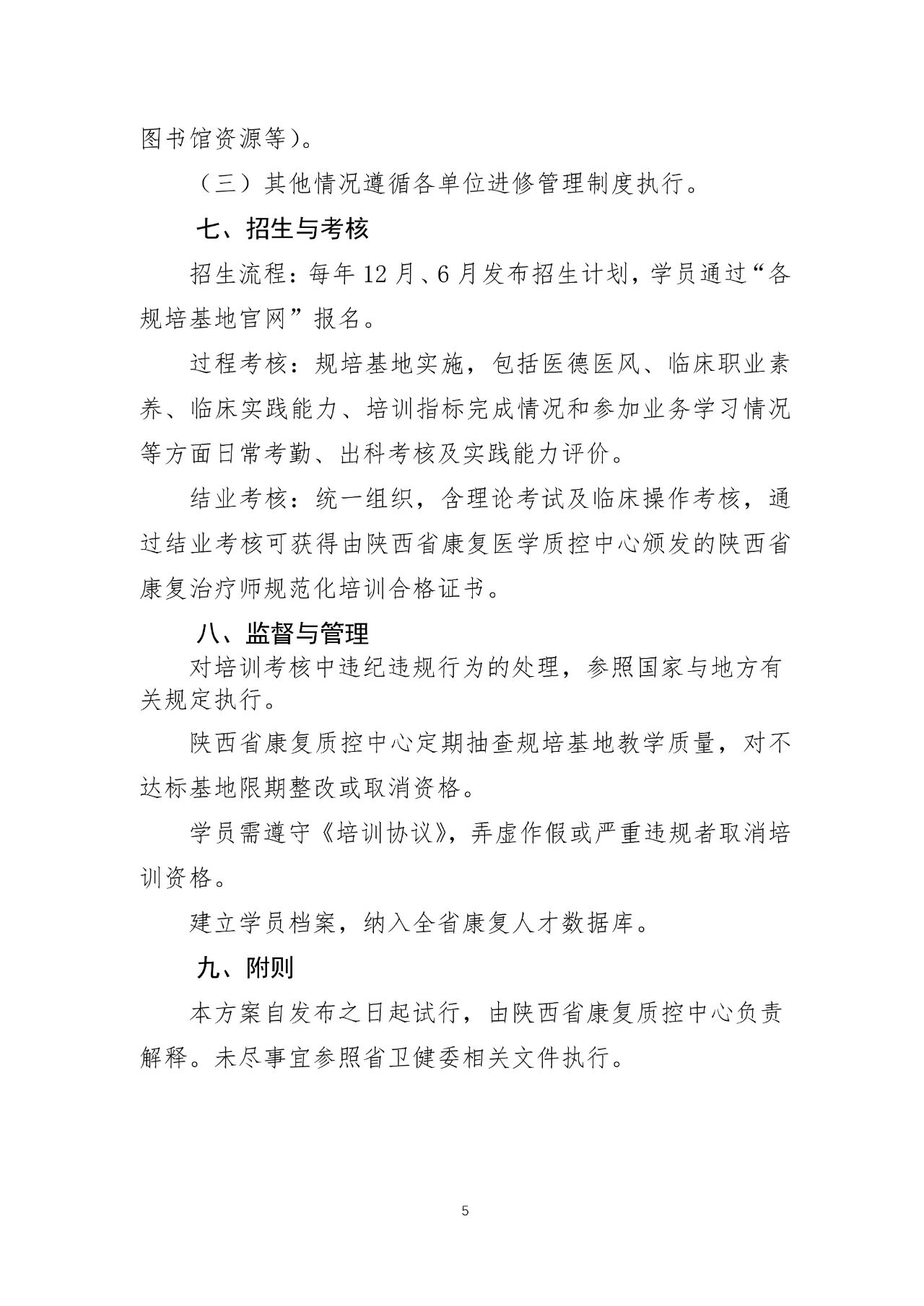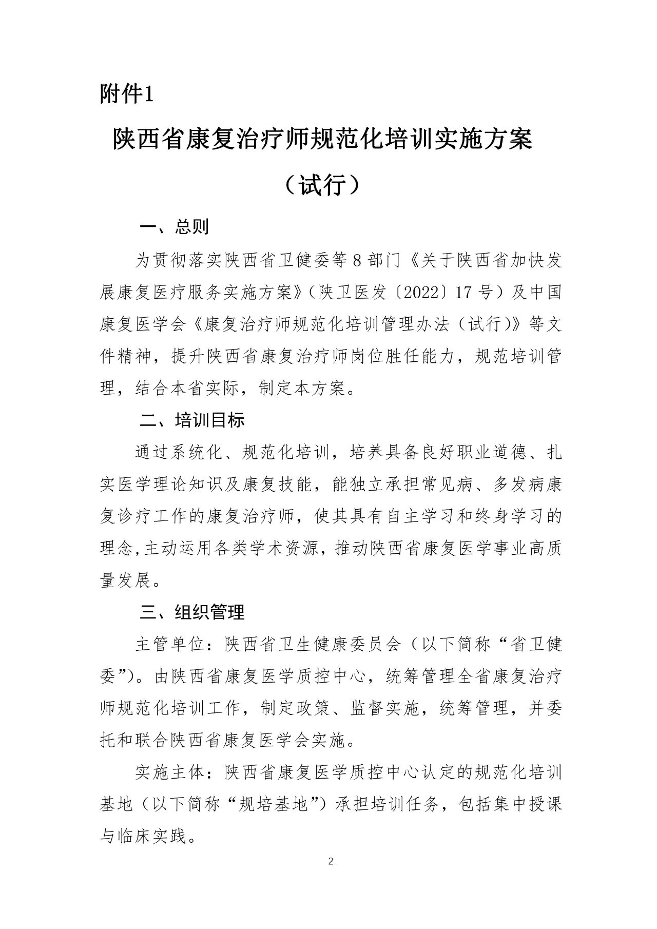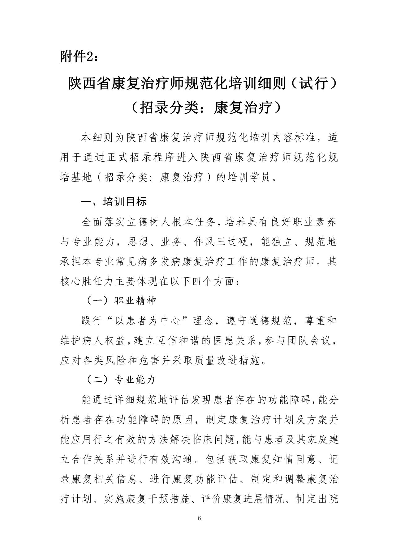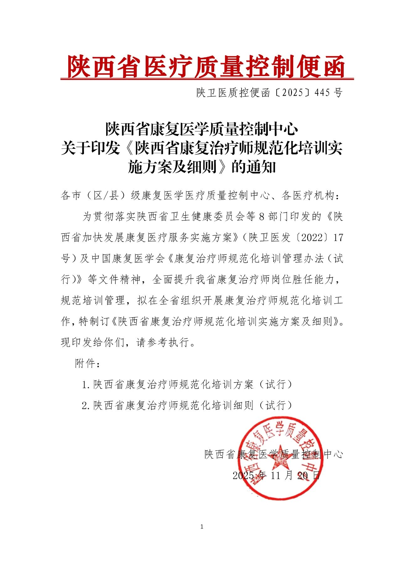 陕西省康复医学质量控制中心关于印发《陕西省康复治疗师规范化培训实施方案及细则》的通知