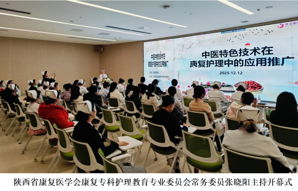 为深入推动中医特色技术与现代康复护理的融合创新,提升康复护理人员的专业能力与临床实践水平,2025年12月12日下午,由陕西省康复医学会主办,陕西省康复医学会康复专科护理教育专业委员会与西安国际医学中心医院共同承办的“中医特色技术在康复护理中的应用推广”学术会议,在西安国际医学中心医院成功举办。本次会议以“中医特色技术在康复护理中的应用推广”为主题,旨在系统探讨中医技术在康复护理中的适配场景、操作规范与协作路径,推动中医康复护理向规范化、系统化方向发展。会议汇聚省内多家医院的康复护理专家与骨干,通过专题报告、案例分享与现场交流等形式,实现中医与康复专科护理的双重提升。