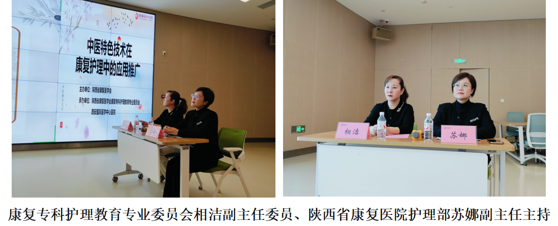 专题授课环节由陕西省康复医学会康复专科护理教育专业委员会相洁副主任委员、陕西省康复医院护理部苏娜副主任共同主持。