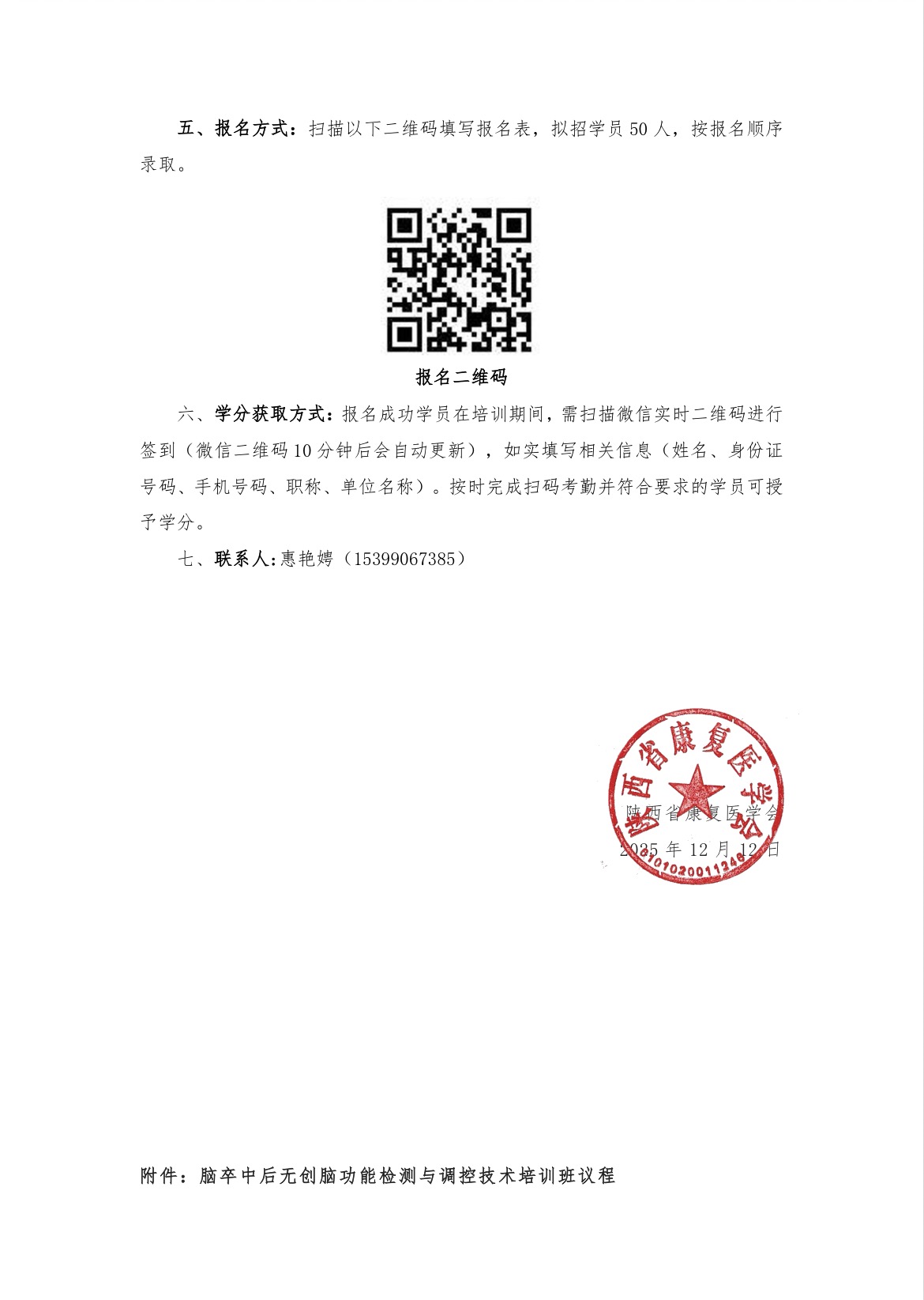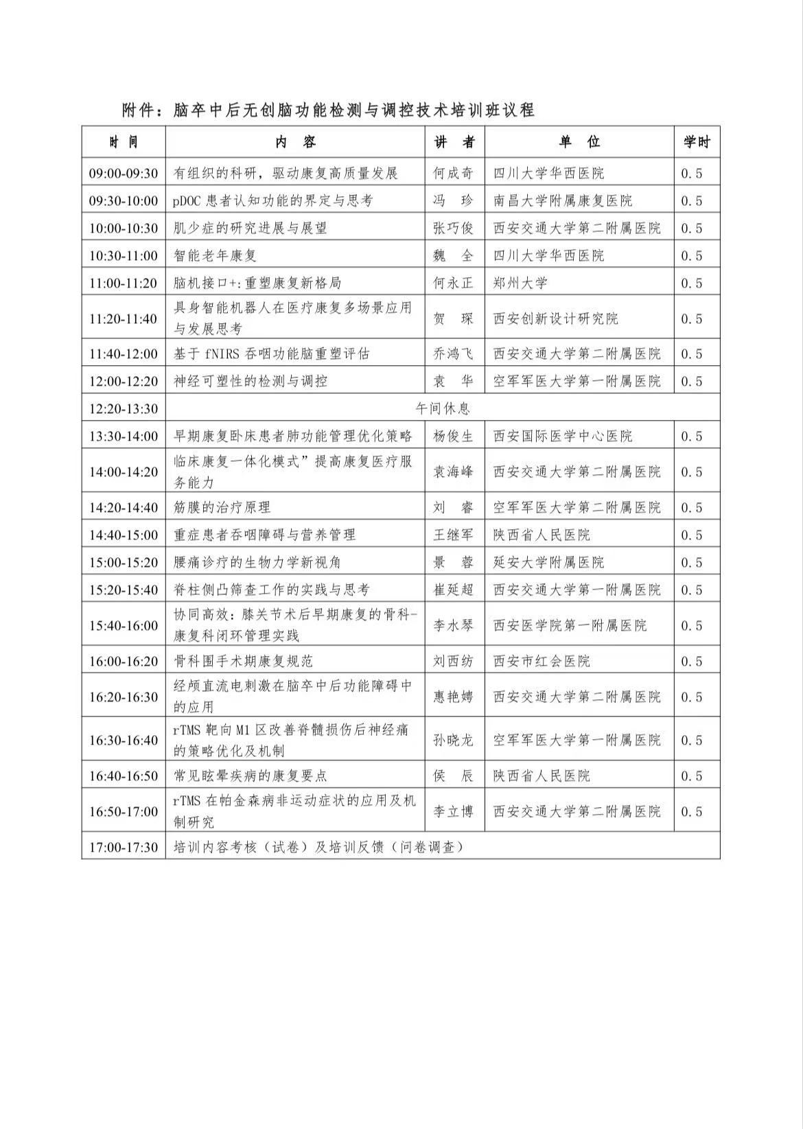 陕西省康复医学会关于举办“脑卒中后无创脑功能检测与调控技术培训班”的通知